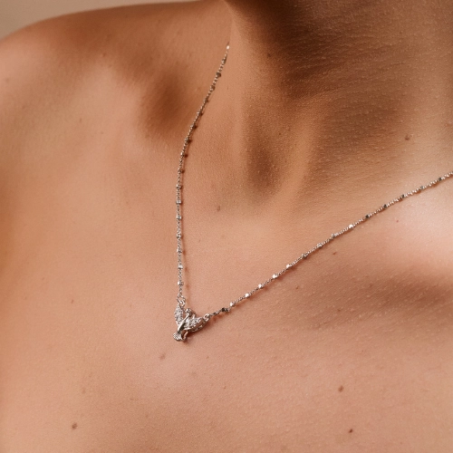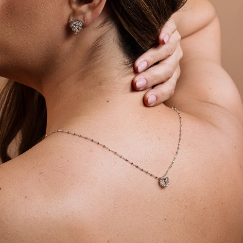 Escapulário banhado a ouro 18K e ródio branco, modelo delicado com pingentes de Espírito Santo e coração cravejados em zircônias, apresentando acabamento refinado e brilhante. Esta peça religiosa une fé e estilo em um design atemporal, sendo a escolha ideal para compor mixes de colares ou presentear alguém especial com proteção e elegância.